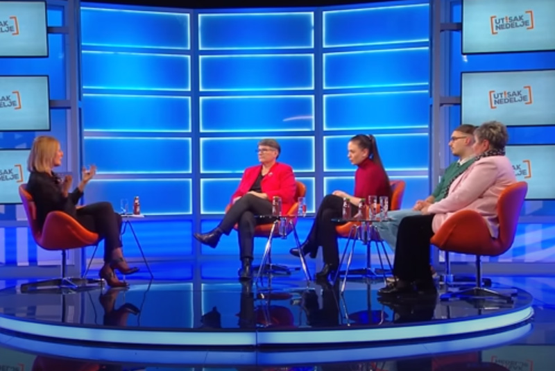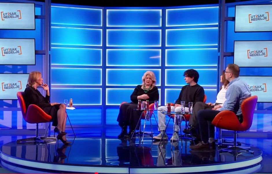 Gosti u emisiji „Utisak nedelje“ bili su: Natalija Jovanović, Ivanka Popović, Jovana Pavlović i student Filozofskog fakulteta.