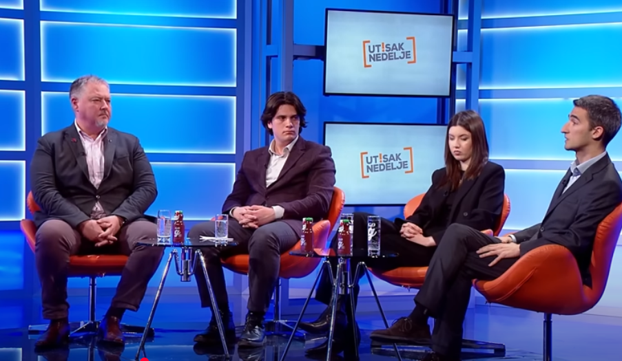 Gosti u emisiji „Utisak nedelje“ bili su: studentkinja FF u Beogradu, Aleksandar Krstić, Matija Lazarević i Vukašin Đinović.